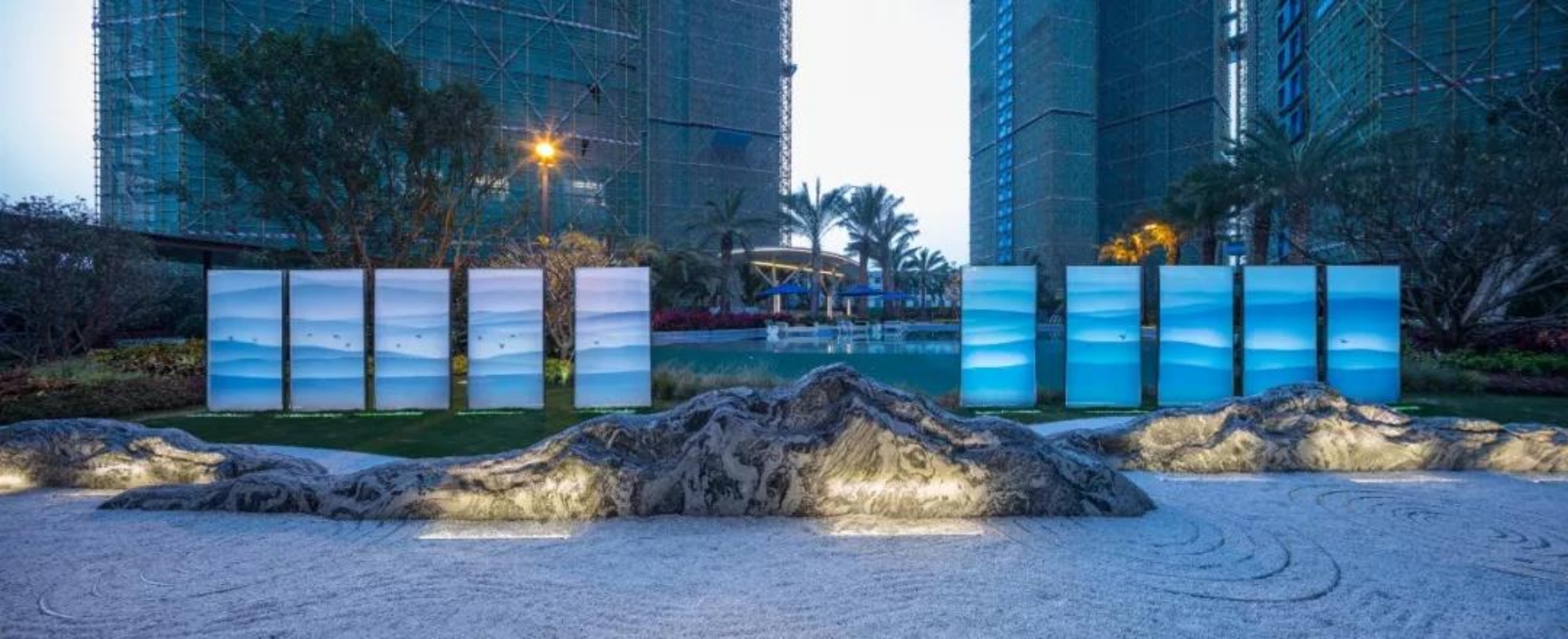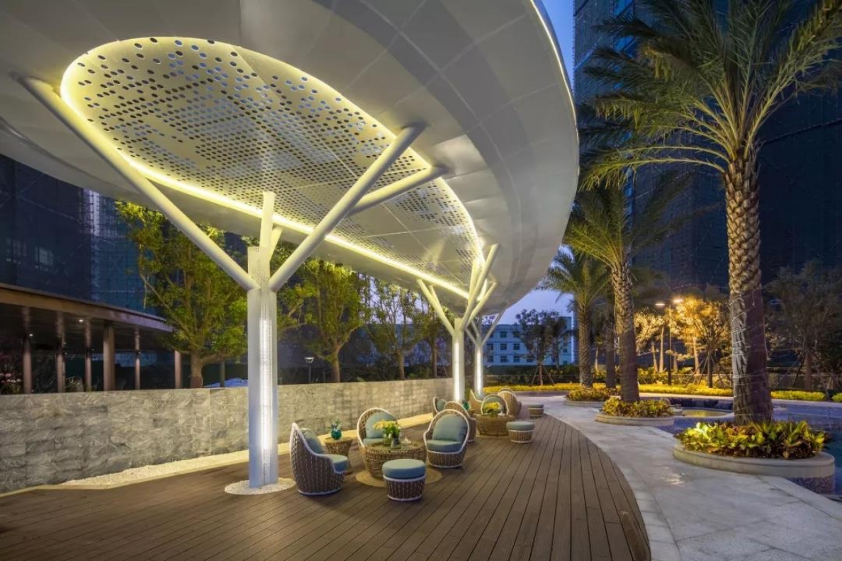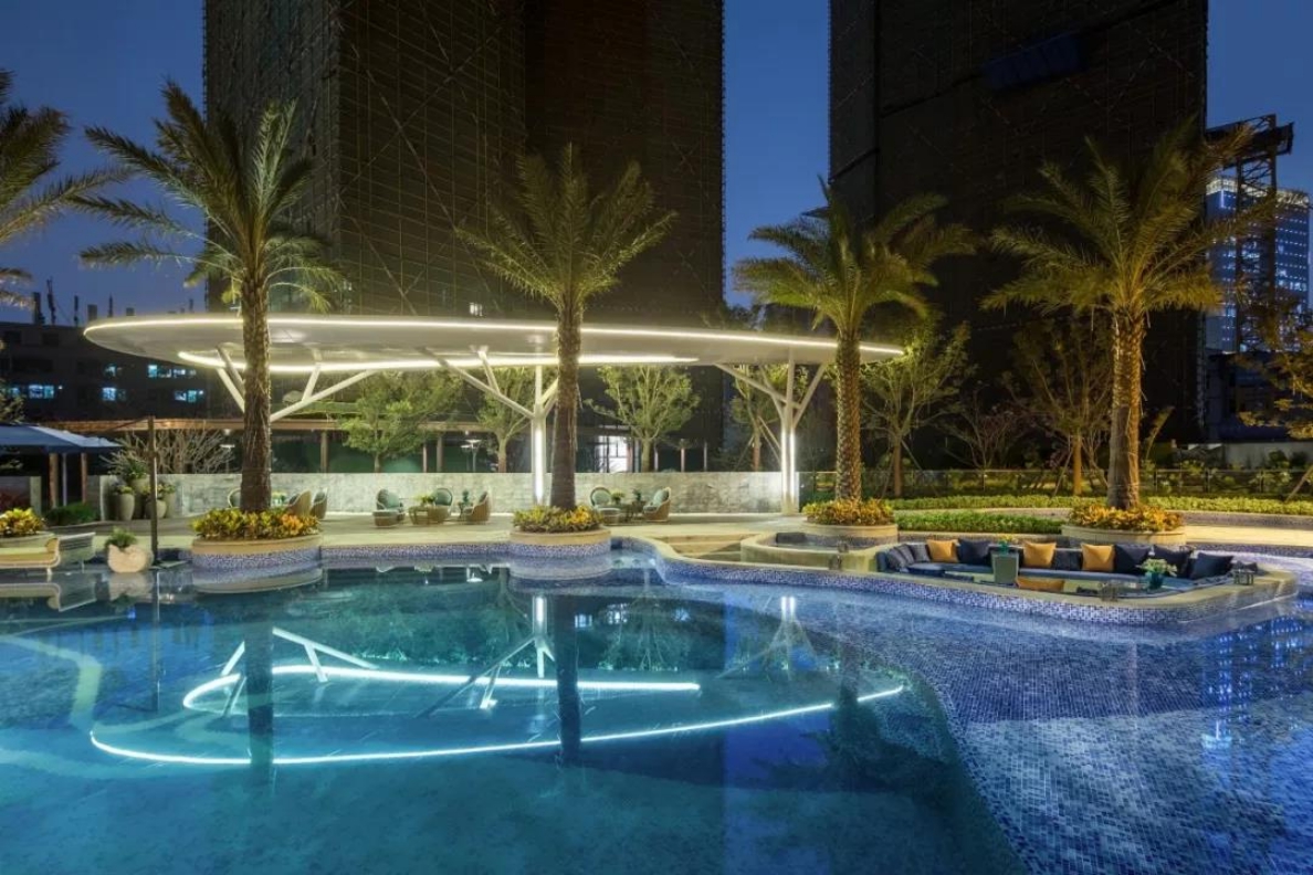 深圳星河天地位于光明區光明大道及豐安路交匯處,項目涵蓋了住宅、辦公、商業等多種業態,是深圳光明區強大的城市綜合體。景觀設計以現代度假式園林為主題,中央設置主題式風情泳池,提取海灘曲線的設計元素形式,將其形成整體有機的景觀層次,以啟緣、追夢、探幽、入畫、賞花、驚艷、登庭七重景觀序列依次展開,打造自然與藝術融合的 “現代濱海度假式園林”的生活主題社區。